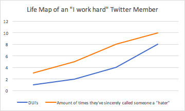The reason they own this portion of my completely average brain isn’t because they worked hard for it, but instead because they THINK they worked hard for it. It is terribly hard to convince an “I work hard” Twitter member that just because they spent 12 hours watching Tai Lopez Youtube videos, doesn’t mean that they worked harder than the kid getting their bachelors degree/working a job.